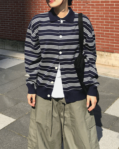 남녀공용 벨라 스트라이프 카라 가디건 (3C)