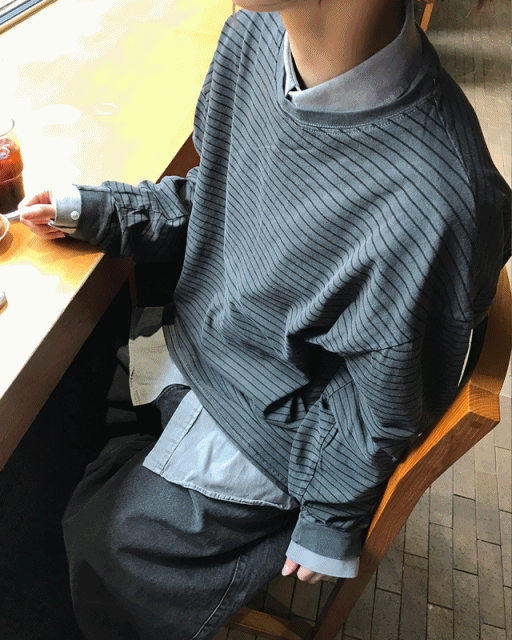 남녀공용 트리 피그먼트 단가라 긴팔 티 (2C)